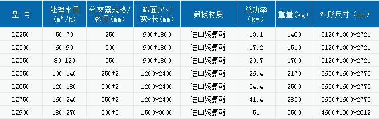細(xì)砂回收機(jī)技術(shù)參數(shù)表